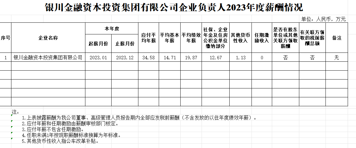 銀川金融資本投資集團有限公司企業(yè)負責人2023年度薪酬情況
